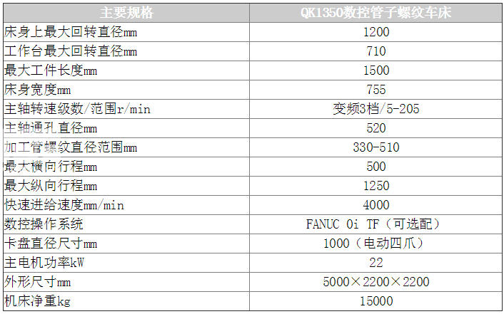 QK1350型數(shù)控管螺紋車床是針對石油、化工、冶金行業(yè)輸油管、鉆桿、套管的螺紋加工要求專業(yè)化設(shè)計制造。機床采用雙卡盤夾緊方式,數(shù)控系統(tǒng)自動控制,可******加工各種內(nèi)、外螺紋,并具有普通數(shù)控車床的功能。