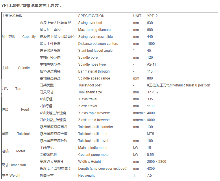 YPT12數(shù)控管螺紋車床是高精度,高效率的斜床身自動(dòng)化機(jī)床,配備多工位伺服或動(dòng)力刀塔等先進(jìn)配置,能夠加工直線圓柱、斜線圓柱、圓弧和各種螺紋、并且能夠加工蝸桿等復(fù)雜工件